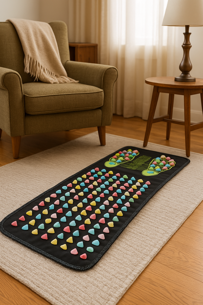Nie musisz wychodzić z domu, żeby zadbać o zdrowie stóp i całego ciała – mata ChodźNaZdrowie™ działa zawsze wtedy, gdy masz chwilę dla siebie.